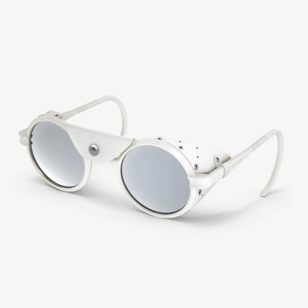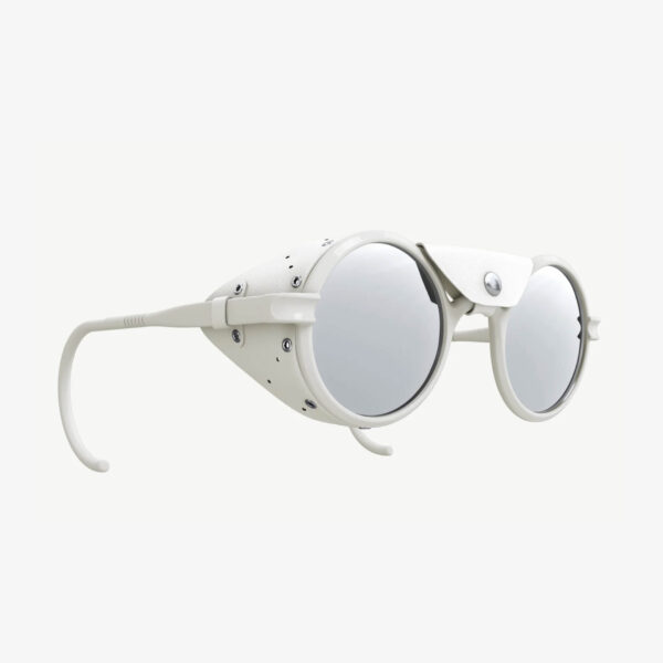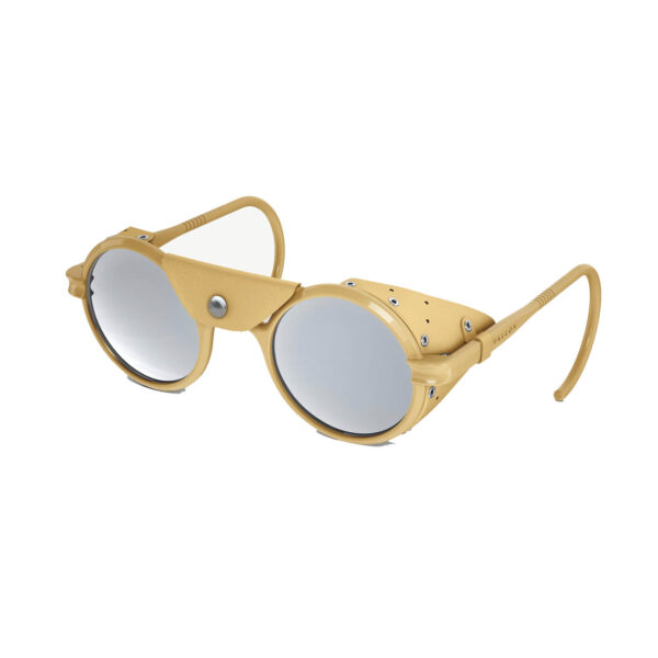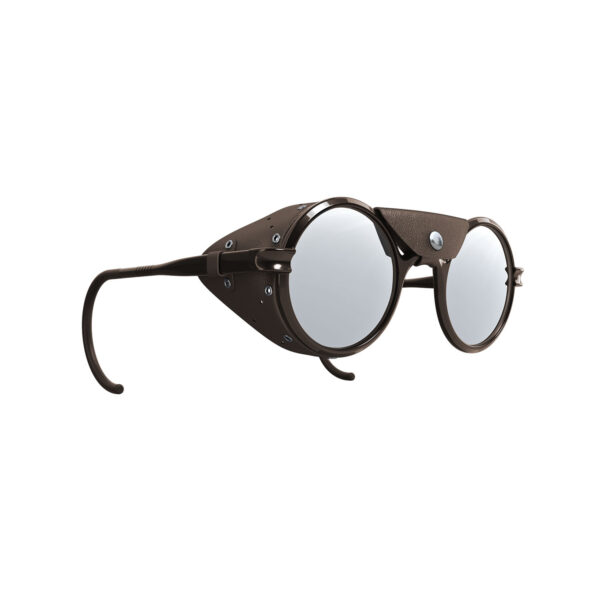 El primer producto de VALLON, ahora en su cuarta edición, ha logrado llegar a las cimas más altas del planeta. La silueta redonda vintage está protegida por protectores laterales de cuero y viene con una pieza central extraíble, combinada con lentes espejadas Cat. 4 que brindan una protección inigualable para sus ojos.