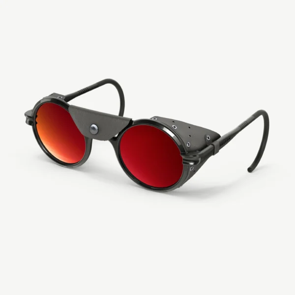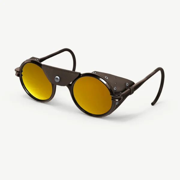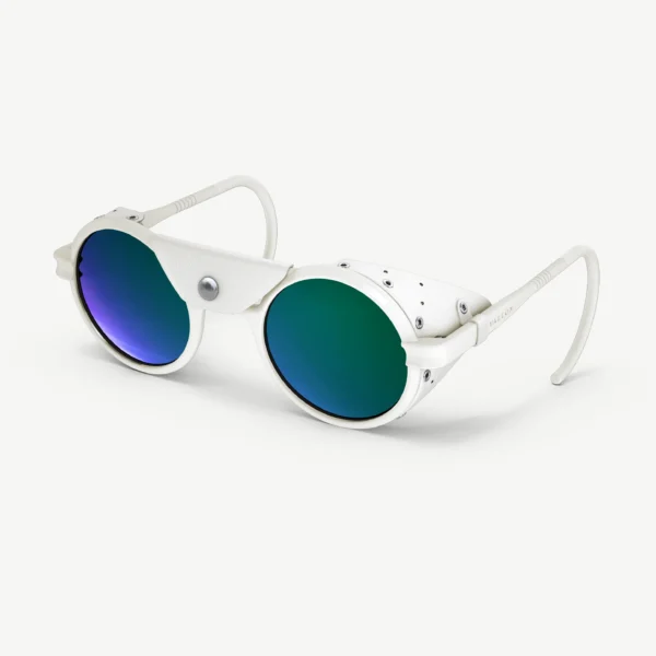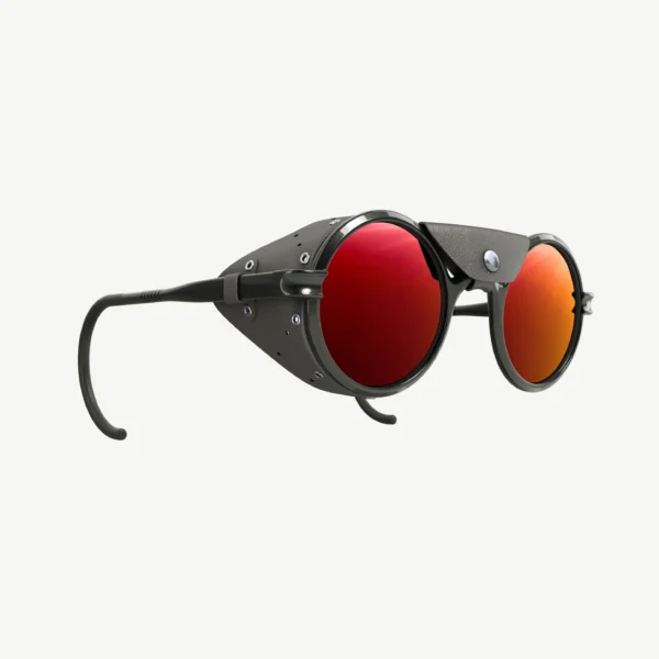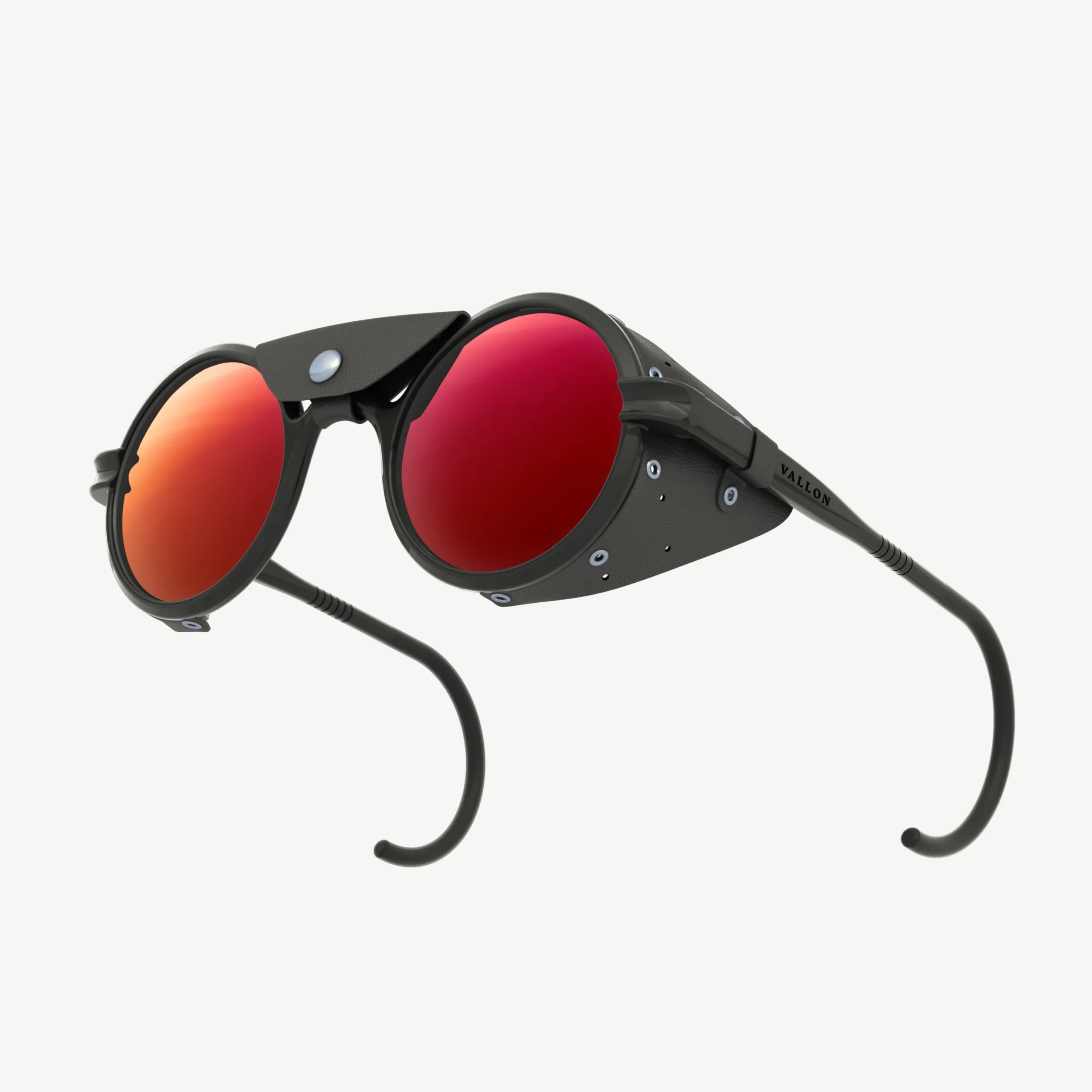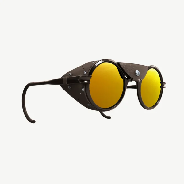 El primer producto de VALLON, ahora en su cuarta edición, ha logrado llegar a las cimas más altas del planeta. La silueta redonda vintage está protegida por protectores laterales de cuero y viene con una pieza central extraíble, combinada con lentes espejadas Cat. 4 que brindan una protección inigualable para sus ojos.