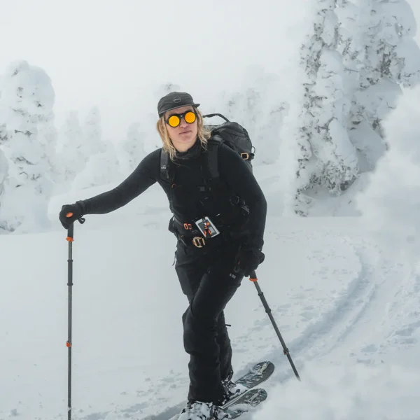 El tono marrón es óptimo para la nieve, ya que la percepción cálida mejora los contrastes, mientras que el revestimiento antivaho evita la condensación durante los ascensos largos. Las lentes ultratransparentes Cat. 4 tienen un VLT del 6 %, lo que reduce la fatiga visual y proporciona comodidad durante todo el día. Las lentes se han cortado de policarbonato de 2 mm y son irrompibles para una máxima seguridad.